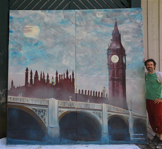 Format: 2,40 x 4 m - Acrylique pistolet et aérographe + pinceaux sur toile plastifiée