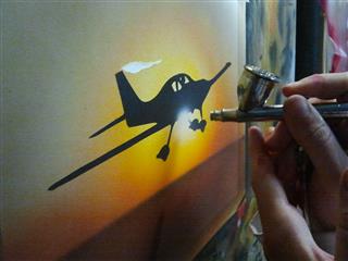 Avec mes collègues, nous avons été formé à l'aérographie pour peindre sur tous les supports et surtout sur carrosserie.