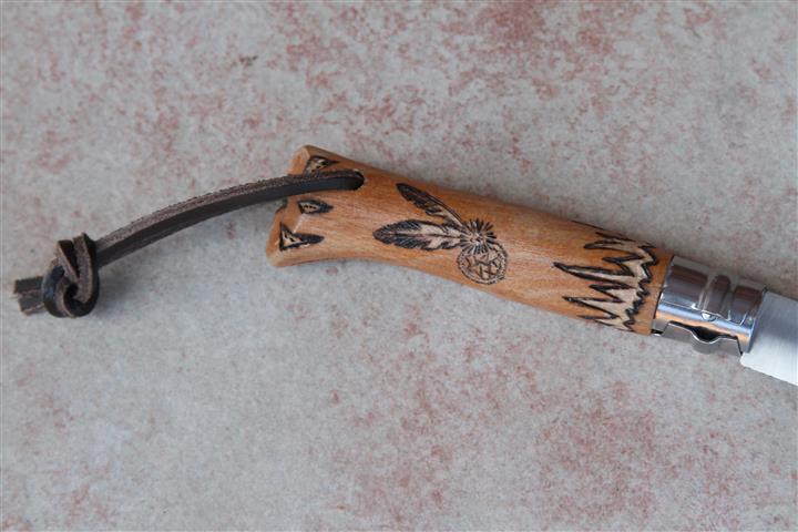 28/12 - MANCHE D'OPINEL SCULPTÉ ET PYROGRAVÉ