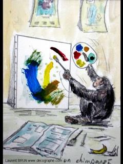 3 images qui démondrent la banalisation et l'absurdité de l'art moderne. 1ere image peint par un singe,