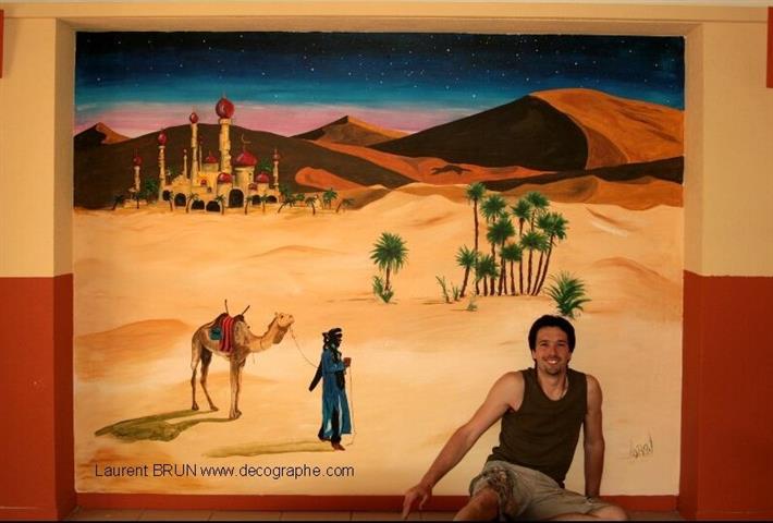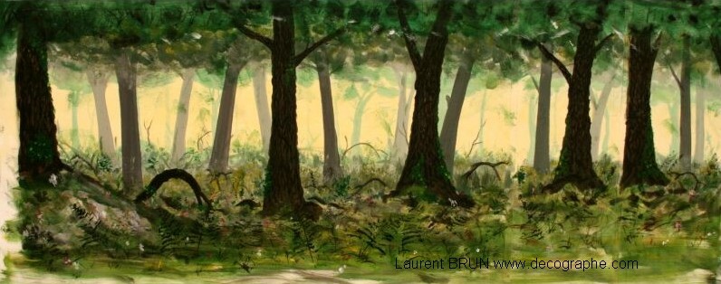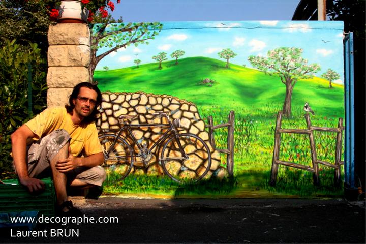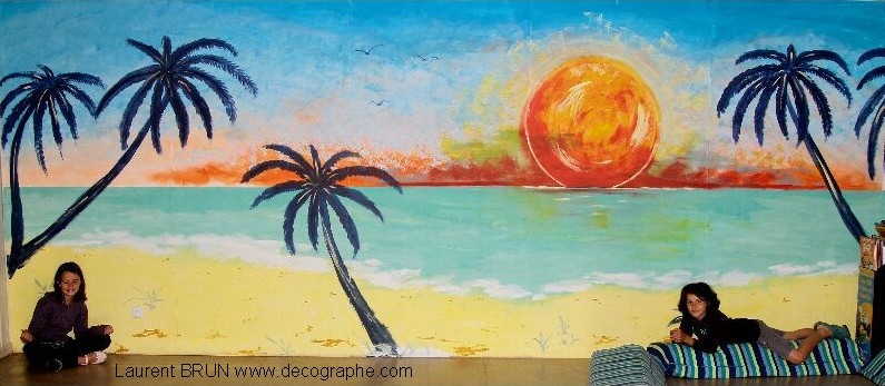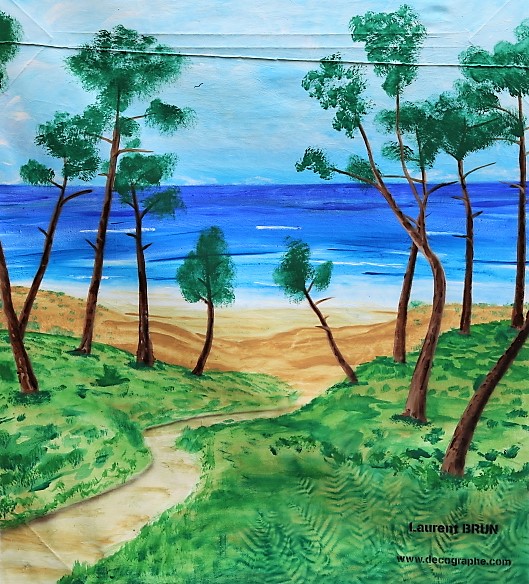 Décor réalisé avec la bombe, l'aérographe et les pinceaux, tout à l'acrylique, chez un particulier à coté du lac de Léon.