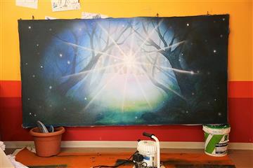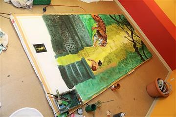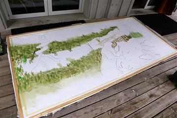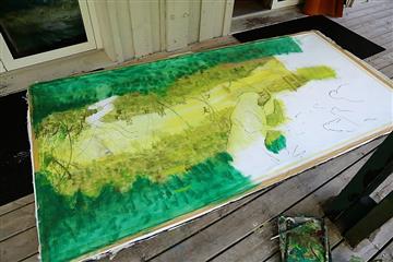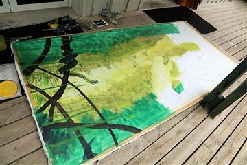les herbes en premier plan ont d'abord servi à cacher des croutes de l'ancienne peinture dessous qui s'écorchait!