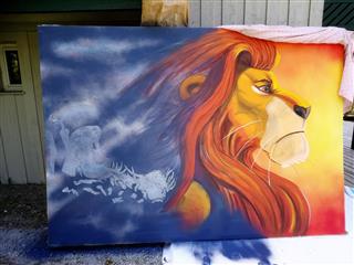 réalisé à l'éponge, à l'aéro et beaucoup au pinceau.