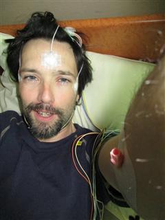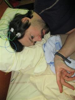 Maria-Angeles est venue nous enlever les électrodes que nous avons eu 24h, non seulement sur le crâne et les joues mais aussi sous le menton.
