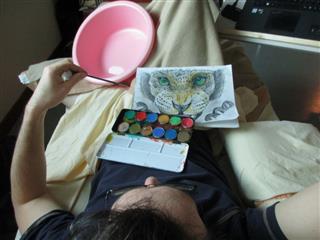 Comme j'ai passé trop de temps devant l'ordi, et que ça donne mal à la tête, j'ai reprismon dessin d'il y a 2 semaines et avec mon petit materiel d'écolier, j'ai avancé ma peinture,entre crayon et aquarelle!
