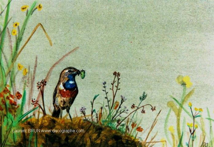 Pour obtenir la végétation au fond dans un style aquarelle, j'avais mis mon dessin fraichement peint dans le tiroir à chaussure du grand poêle qui chauffait l'escalier et l'étage chez mes grands-parents !