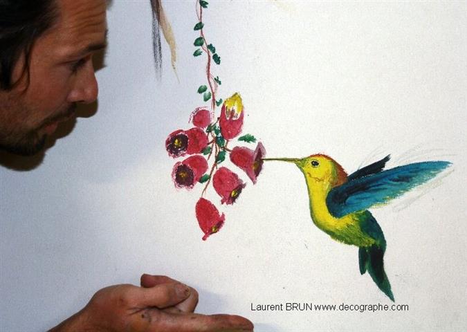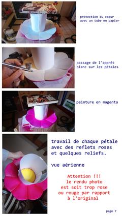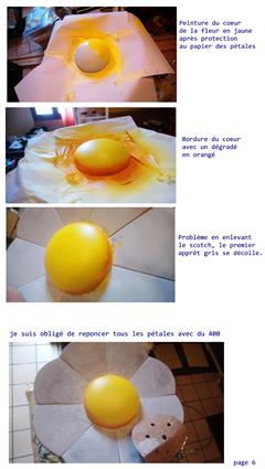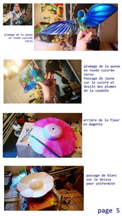J'ai pris le temps de peindre à l'aéro et fait chaque plume au pinceau. La fleur aura changé 3 fois de couleur pour être finalisée tout en orange.
