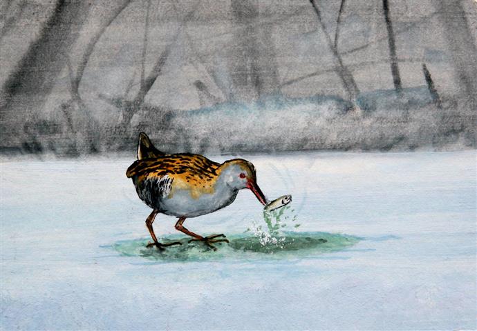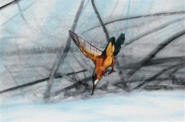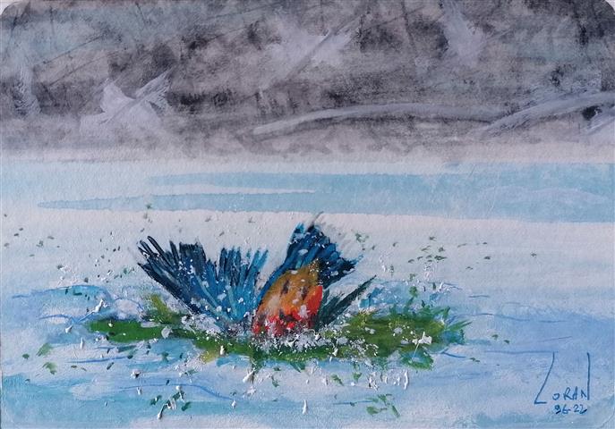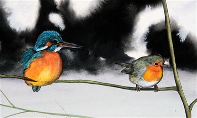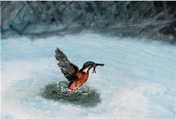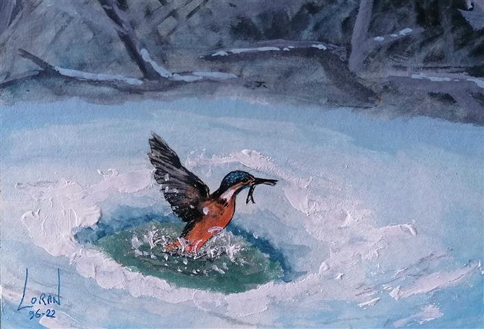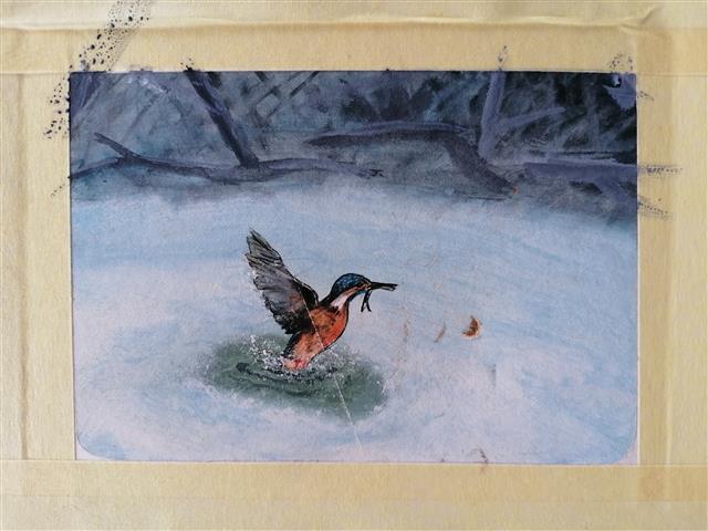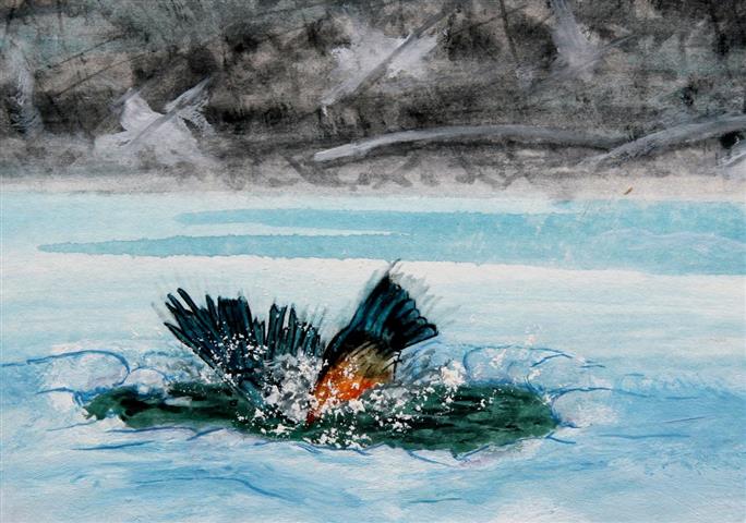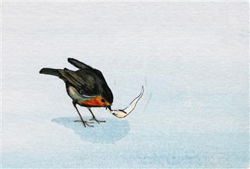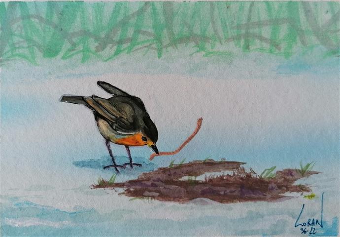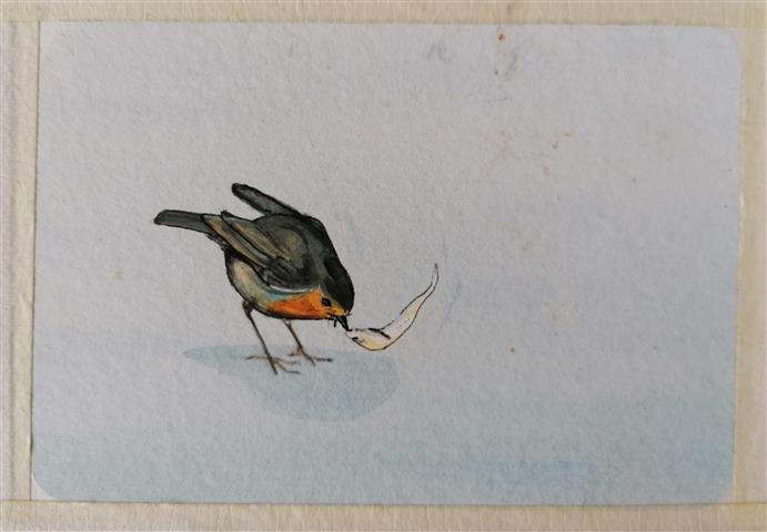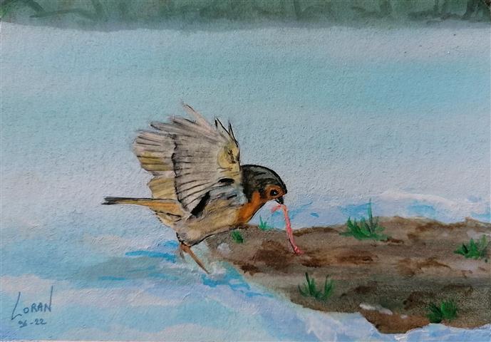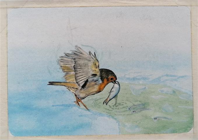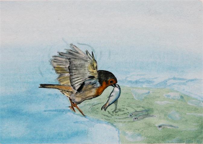 De plus, un tableau seule montrant un Rouge Gorge avec un poisson ???