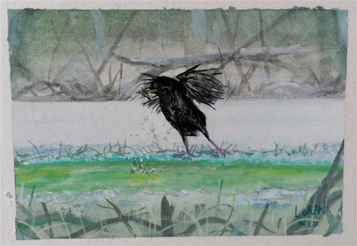 J'ai retouché le fond qui avait été légèrement rayé, j'ai amélioré les oiseaux de très peu et remis un éclat blanc dans les yeux le 21-03-2022