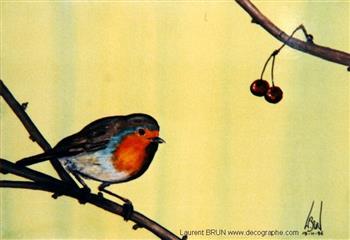 n°171 - ROUGE GORGE SUR FOND JAUNE