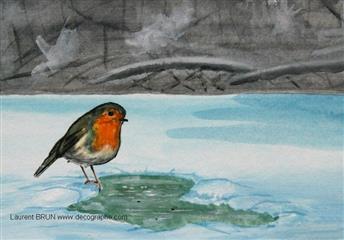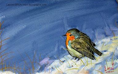 n°274 - ROUGE-GORGE DANS LA NEIGE