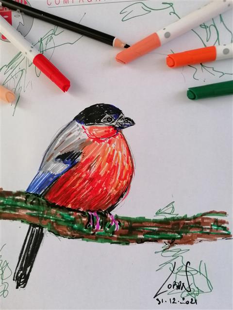 Reproduction d'une couverture d'un magazine de la LPO. Lorsque je l'ai présentée à ma mère, elle m'a dit que c'était jolie mais elle m'a reproché de ne pas avoir continuer mes études, et qu'on ne pouvait pas vivre de ça !