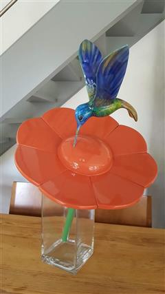Commande d'un sculpteur pour colorer l'oiseau et sa fleur
