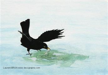 n°126 - MERLE A LA PECHE & MARTIN PÊCHEUR